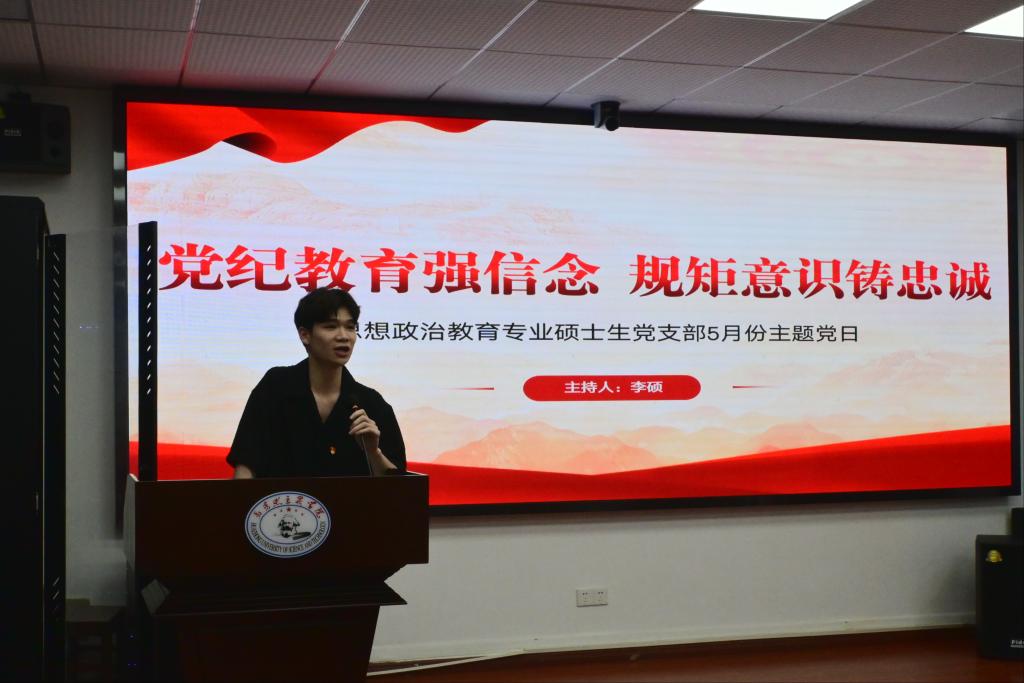 (通讯员:刘孟迪)5月23日晚,yl23411思想政治教育专业硕士生党支部五月党日活动在东七楼203会议室举行。为贯彻中共中央办公厅《关于在全党开展党纪学习教育的通知》,支部本月党日活动以“党纪教育强信念,规矩意识铸忠诚”为主题进行集体学习,活动由支部组织委员李硕主持。