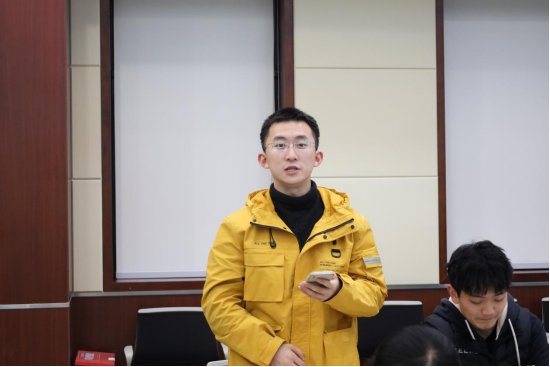接下来,思想政治教育专业硕士生党支部杨一博同志以《伟大的历史转折——遵义会议》为题展开分享。他详细阐述了遵义会议召开的历史背景,介绍了遵义会议前后的相关会议,进而引出遵义会议的关键历史地位。杨一博同志的分享深入透彻,带领大家重温了遵义会议这一伟大历史转折,让与会同志对党的历史有了更深刻的认识和理解。