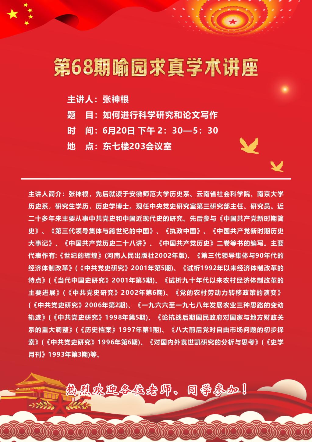 第68期喻园求真学术讲座:如何进行科学研究和论文写作