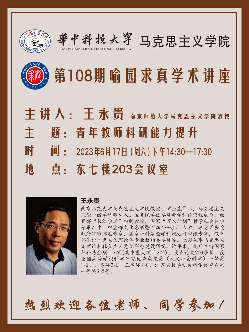 第108期喻园求真学术讲座:青年教师科研能力提升