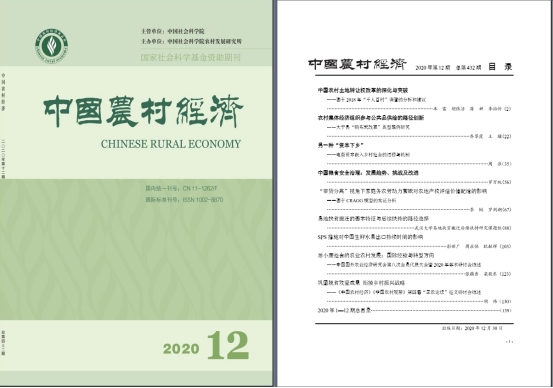 《中国农村经济》是国内农业经济学学科的顶级期刊,亦为公司人文社科领域B类权威期刊。其由中国社会科公司主管、中国社会科公司农村发展研究所主办,是中国有关三农问题的高水准学术期刊。根据《中国学术期刊影响因子年报》(2020版),在农业经济类51种学术期刊中,《中国农村经济》影响力指数和影响因子均名列第一,在489种经济学学术期刊中,《中国农村经济》综合影响因子排名第三,并获评“中国最具国际影响力学术期刊”。