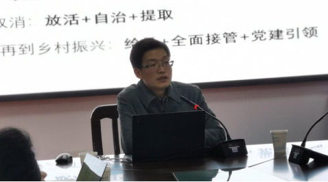 其次,刘老师指出,大历史不局限于建党一百年,从这一视野出发分析治理乡村的逻辑转换,要从清末民初说起,他指出传统“乡土中国”的乡村社会是“控制+自治+提取”,中国乡村治理的逻辑转换经历了四个阶段,即清末民初国家政权建设以来直至1949年:介入+动员(组织化)+改造+提取、1949年至1982/1984年:改造+全面规管+提取、1982/1984年至农业税取消:放活+自治+提取、农业税取消至精准脱贫再到乡村振兴:给予+全面接管+党建引领,其中的每个阶段与前一历史时期都是相呼应的。