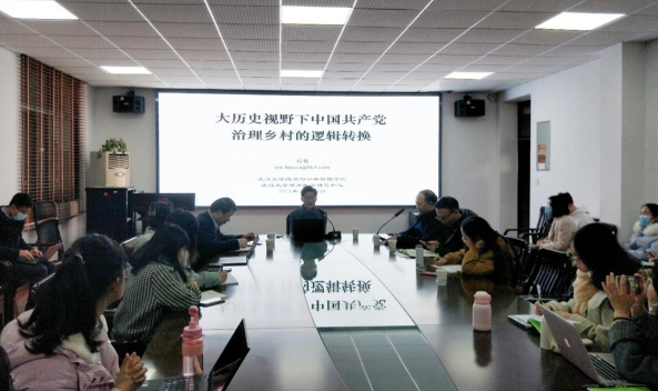 12月14日晚,公司第85期喻园求真学术讲座于公司203会议室召开,武汉大学政治与公共管理公司副经理刘伟教授应邀为公司师生作题为“大历史视野下中国共产党治理乡村的逻辑转换”的学术讲座,党建研究所所长李翔老师主持了本次讲座。