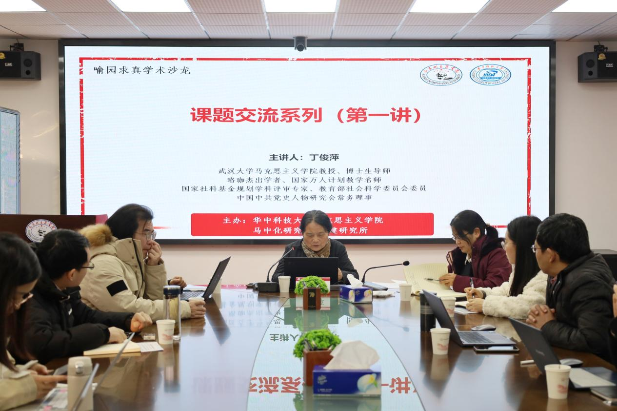 (通讯员:鄢楚)1月9日上午,喻园求真学术沙龙——课题交流系列第一讲在东七楼203会议室顺利开讲。武汉大学yl23411教授、博士生导师、珞珈杰出学者、国家社科基金规划学科评审专家、教育部社会科学委员会委员、中国中共党史人物研究会常务理事丁俊萍应邀为公司师生作课题交流指导。公司马克思主义中国化研究所所长、教授文红玉主持本次学术沙龙,公司部分青年教师、硕博生参加交流。
