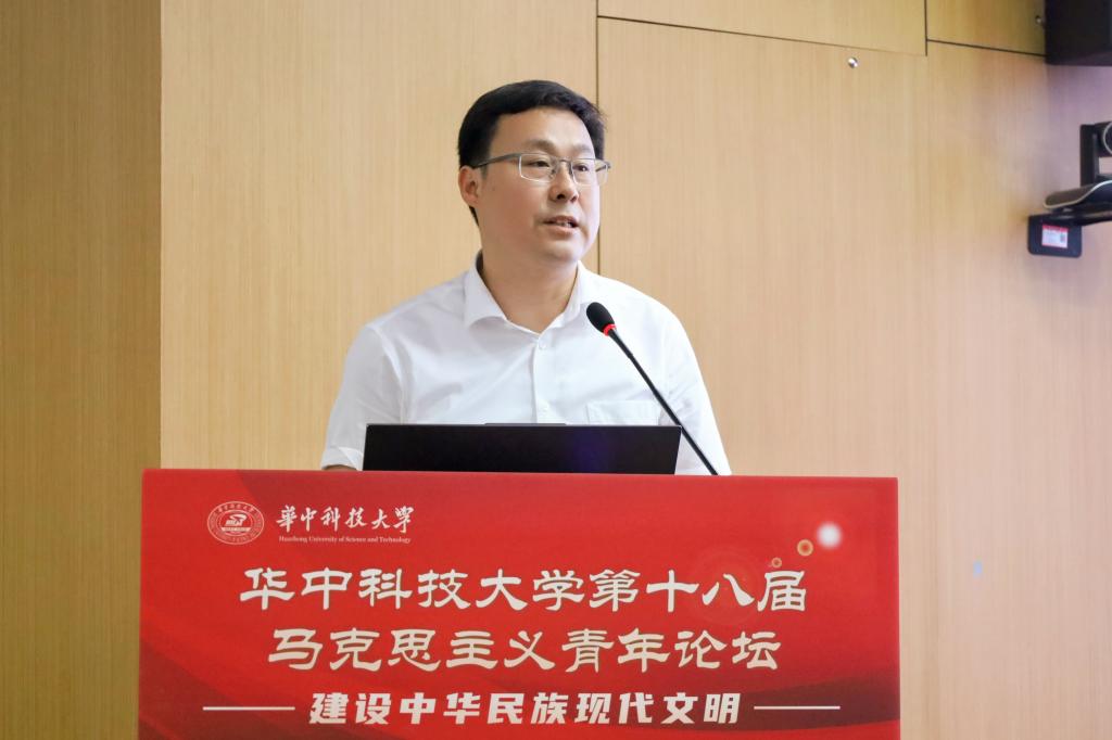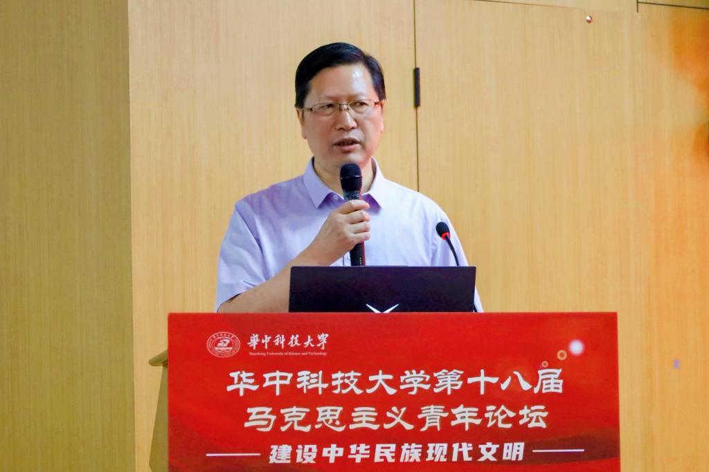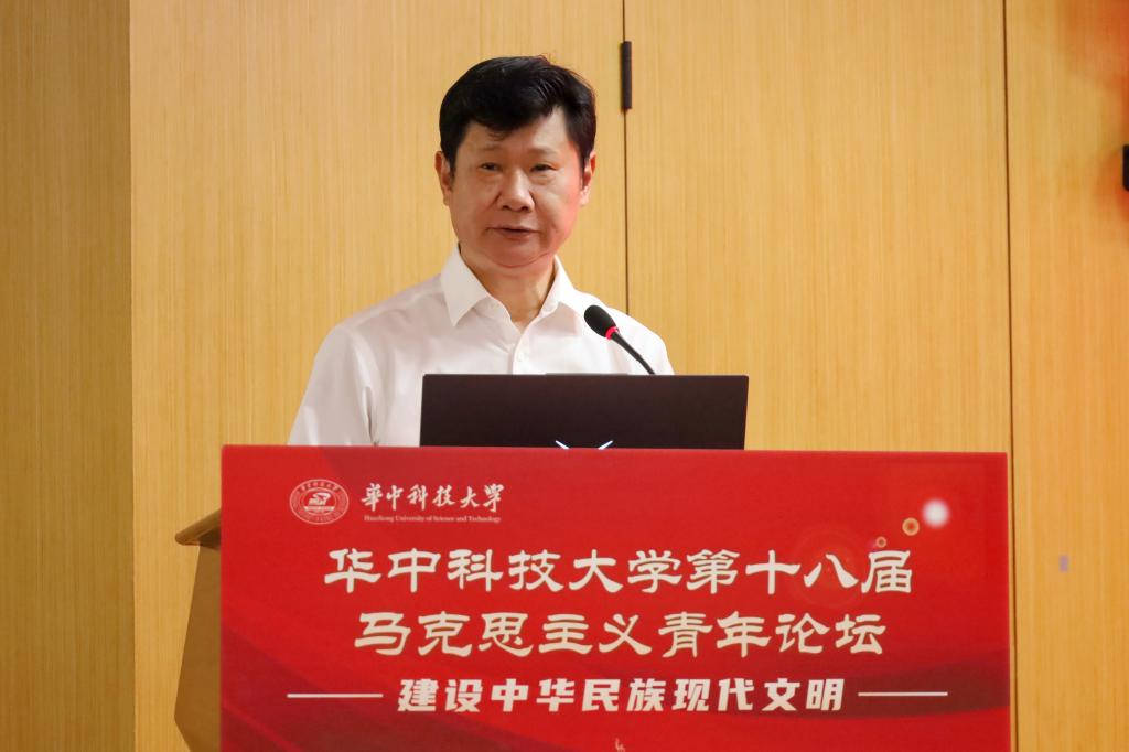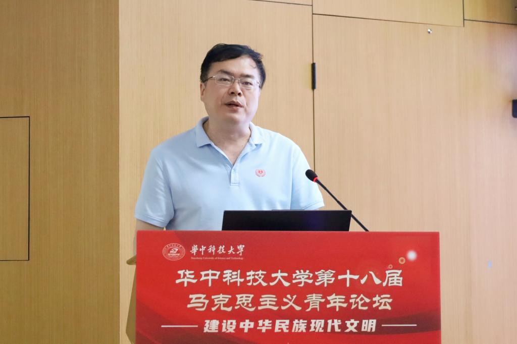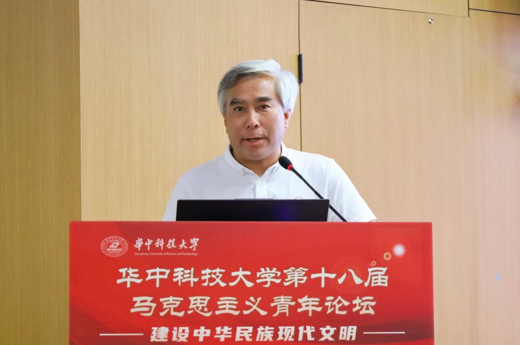 (通讯员:徐薇 杨梦楠)6月15日,由yl23411党委宣传部、共青团yl23411委员会、yl23411、yl23411马克思主义研究院、湖北省高校青年工作研究会、湖北省中国特色社会主义理论体系研究中心yl23411分中心共同举办的yl23411第十八届马克思主义青年论坛在八号楼求实报告厅顺利举办。来自公司和北京大学、武汉大学、吉林大学等多所高校和研究机构的专家学者、青年学子共聚一堂,共同为中华民族现代文明和社会主义文化强国建设贡献智慧。湖北省社科联第九届委员会主席、教授赵凌云,湖北省人大常委、人大教科文卫委员会副主任喻立平,yl23411党委副书记谢正学,党委宣传部常务副部长詹健,团委书记罗迪,人文社会科学处副处长童文胜,公司党委书记王学东,经理岳奎,党委副书记、副经理王明飞,马克思主义研究院副经理梁浩伟以及来自全国各地高校的专家学者、青年学子共同参与此次会议。