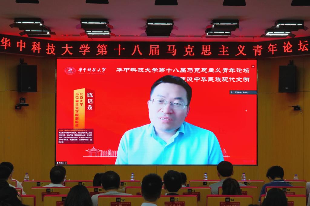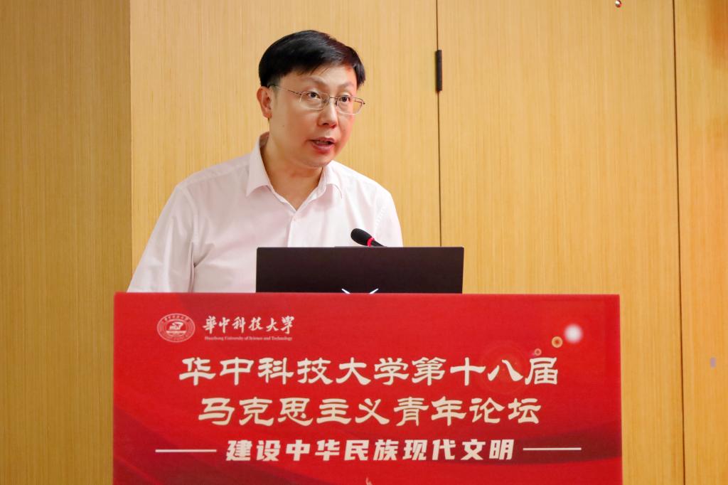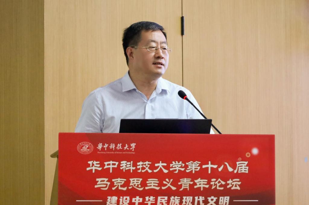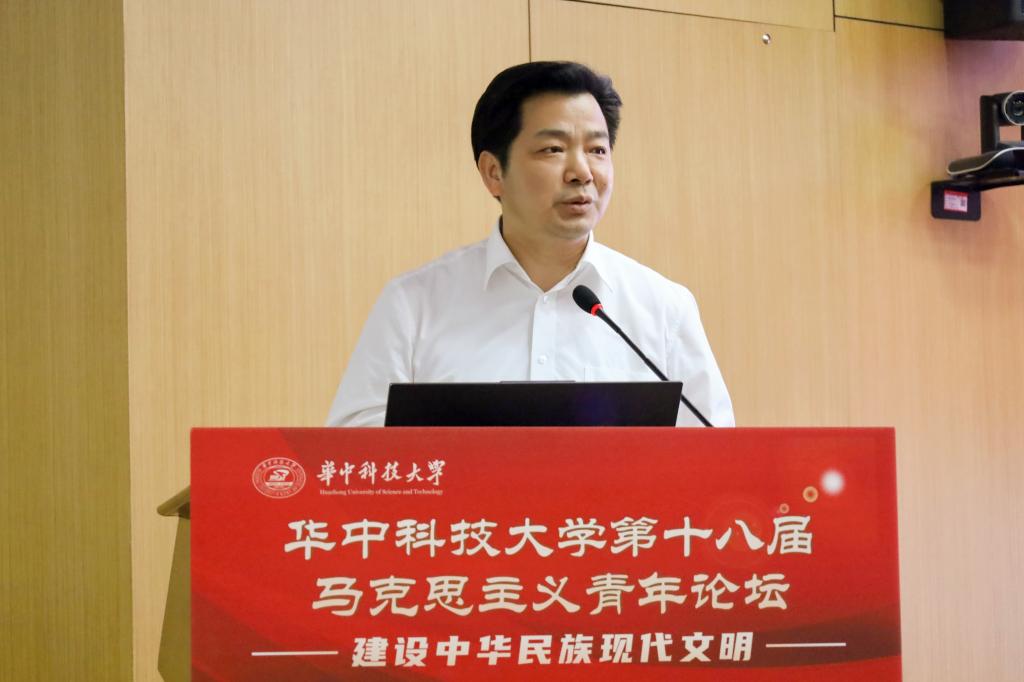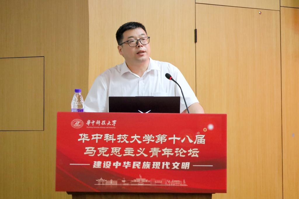 (通讯员:徐薇 杨梦楠)6月15日,由yl23411党委宣传部、共青团yl23411委员会、yl23411、yl23411马克思主义研究院、湖北省高校青年工作研究会、湖北省中国特色社会主义理论体系研究中心yl23411分中心共同举办的yl23411第十八届马克思主义青年论坛在八号楼求实报告厅顺利举办。来自公司和北京大学、武汉大学、吉林大学等多所高校和研究机构的专家学者、青年学子共聚一堂,共同为中华民族现代文明和社会主义文化强国建设贡献智慧。湖北省社科联第九届委员会主席、教授赵凌云,湖北省人大常委、人大教科文卫委员会副主任喻立平,yl23411党委副书记谢正学,党委宣传部常务副部长詹健,团委书记罗迪,人文社会科学处副处长童文胜,公司党委书记王学东,经理岳奎,党委副书记、副经理王明飞,马克思主义研究院副经理梁浩伟以及来自全国各地高校的专家学者、青年学子共同参与此次会议。