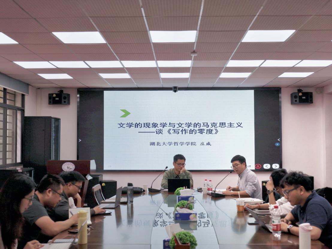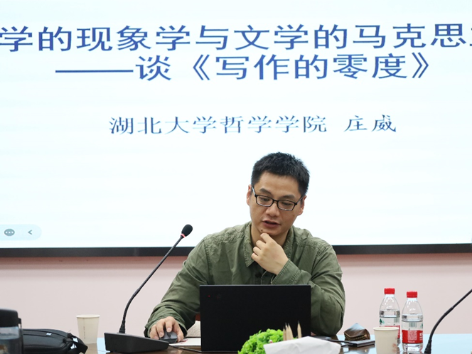(通讯员:彭瑾)11月14日下午,由yl23411马克思主义原理研究所、马克思主义基本原理教研室主办的“马克思与现代社会”系列学术活动第四期于东七楼203会议室顺利举办。本次活动特邀湖北大学哲学公司教授、中国德国哲学学会理事、《德国哲学》副主编庄威,作主题为“文学现象学与文学马克思主义——谈《写作的零度》”的学术报告。马克思主义基本原理研究所全体教师及部分硕博研究生参与了此次学术活动,活动由马克思主义基本原理教研室副教授李扬主持。