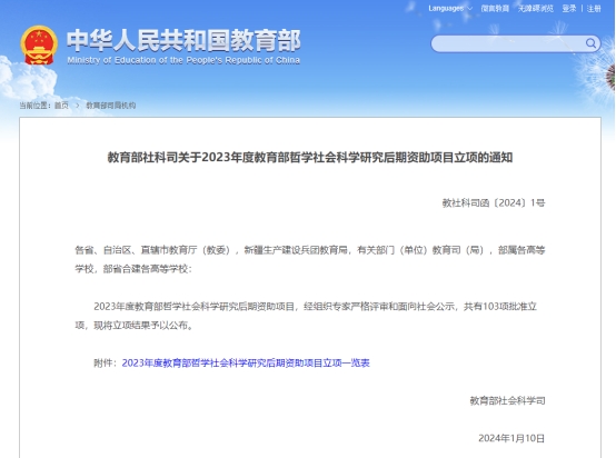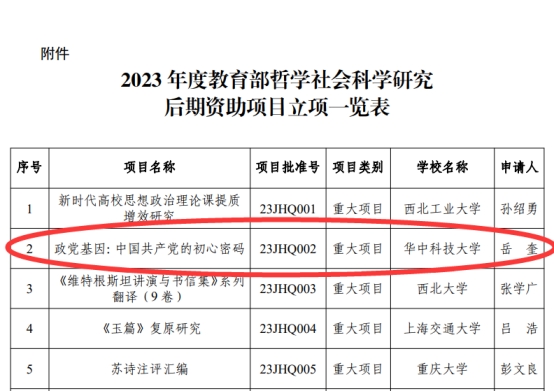 近日,全国哲学社会科学工作办公室公布了2023年度教育部哲学社会科学研究后期资助项目立项名单,我院岳奎教授获得重大项目立项资助。