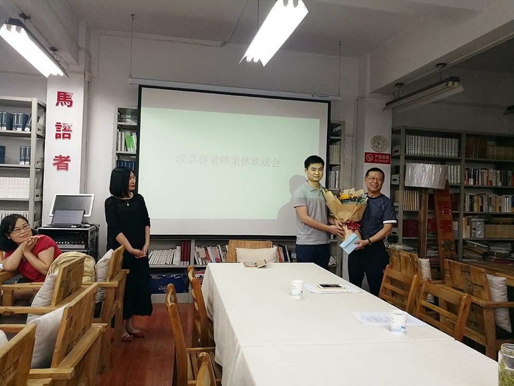 概论党支部举行了段喜春老师荣休会。新进教师沈孝鹏向段老师赠送纪念贺卡和鲜花,并表达了对段老师的感谢和祝福。党委书记胡艳华表达了对段喜春老师工作的肯定以及荣休的不舍,同时欢迎段老师继续以新的方式关注公司发展,并拥有一个健康快乐的退休生活。党支部其他成员也纷纷表达了对段老师的不舍与祝福。段老师回顾了自己的从教经历,以及与同事相处的点滴过往,对同事们表达了谢意,并希望公司发展越来越好。