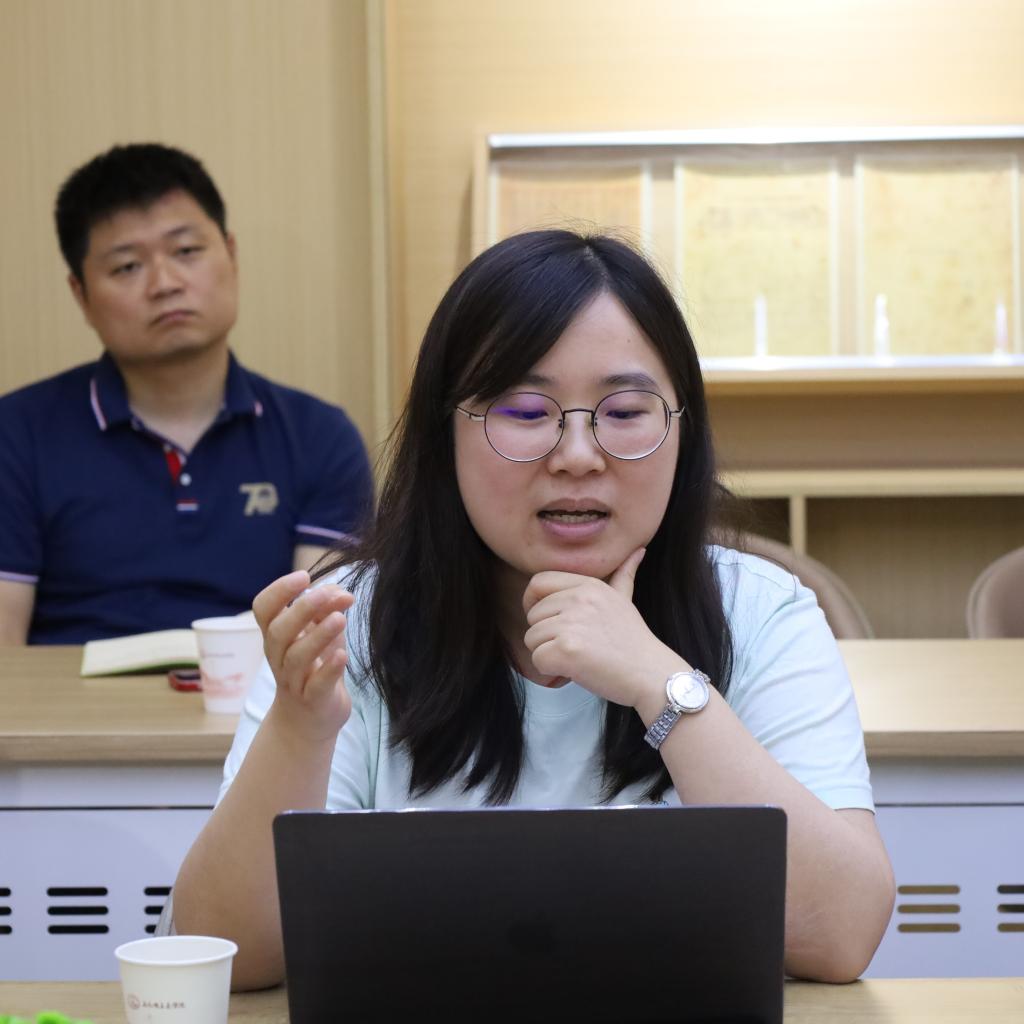 会议伊始,夏增民就目前纲要课程教学的相关情况展开具体介绍。他提到,在实践教学方面,纲要教研室始终坚持“实践与理论相结合、校内校外相结合、思想政治教育理论课与日常思想政治教育工作相结合”的原则,致力构建大思政课;在信息化教学方面,教研室在坚持录制慕课的基础上,紧跟时代脚步制作“知识图谱”,全力打通线上教学资源;在教辅方面,教研室结合教材内容撰写“文献导读”,帮助员工拓展阅读;在教学理念方面,教研室坚持以OBE教学理念为指导,探索打造以价值引领历史的特色课程。