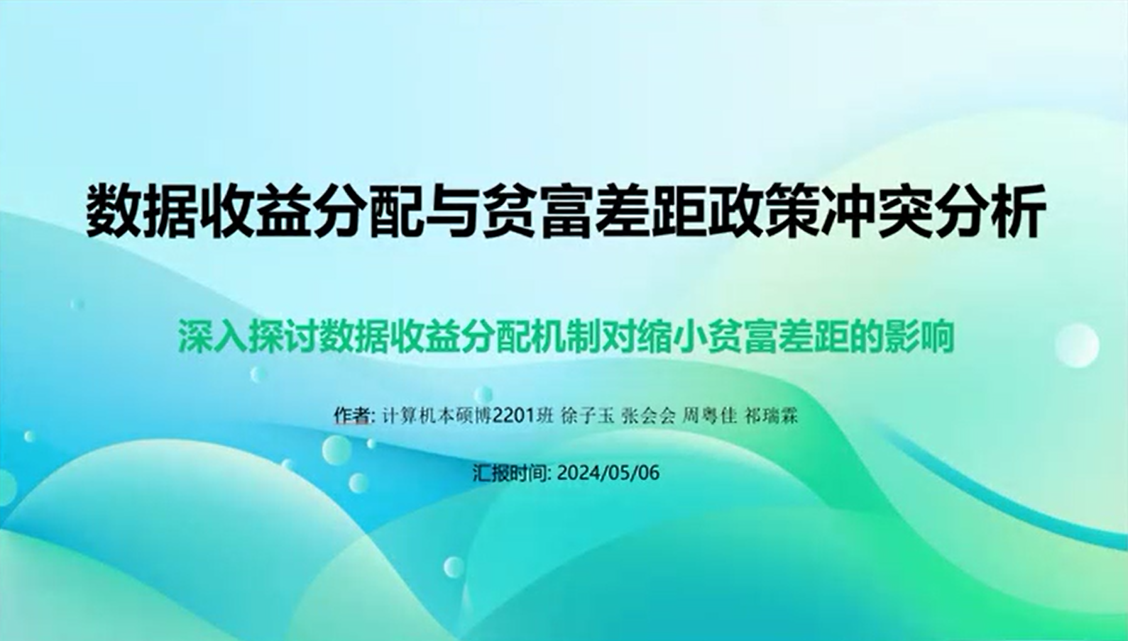 计算机专业的同学们同样通过视频的形式为大家带来他们的分享。这一小组聚焦了一个前沿且极具社会意义的主题——数据收益分配与贫富差距政策冲突分析,深入探讨了数据收益分配的现状及其背后的机制。他们利用大数据分析和机器学习技术,揭示了数据收益在不同群体之间的分配情况,并指出,在追求数据收益最大化的同时,往往会导致贫富差距的进一步拉大。这是因为数据资源的占有和使用往往是不平等的,而这种不平等又加剧了经济和社会的不平等。因此,如何平衡数据收益与贫富差距之间的关系,成为了一个亟待解决的问题。通过本次小组展示,计算机专业的同学们希望能够引起大家对数据收益分配问题的关注,并激发更多人思考如何在数字化时代实现更加公平和可持续的发展。