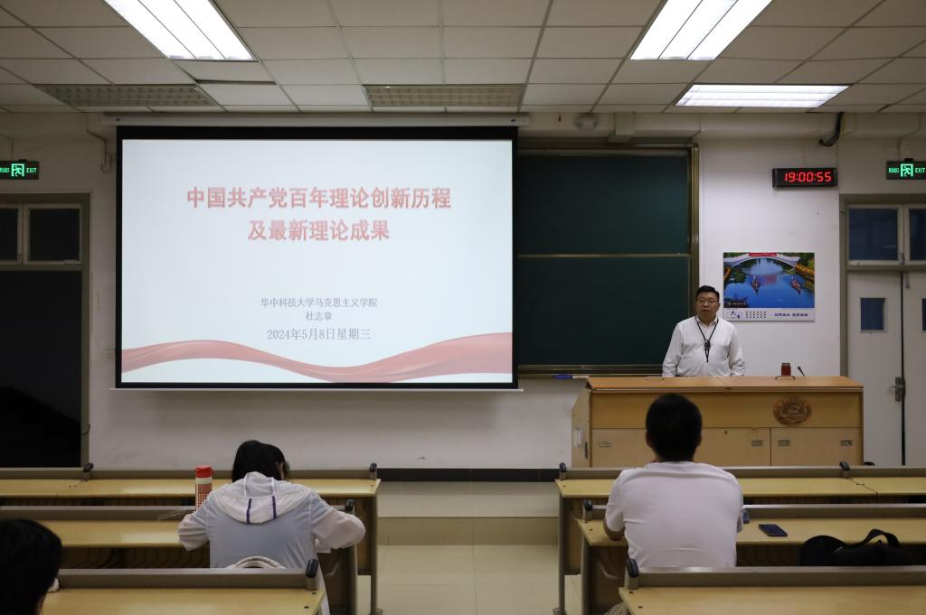 (通讯员:杜佳宁)5月8日晚,yl23411精心推出的“四史”系列精品选修课程——《百年中国》第八讲于东九教学楼C203教室如期开讲。yl23411教授杜志章以《中国共产党百年理论创新历程及最新理论成果》为主题,凭借其扎实的专业基础和独特的学术视野,带领同学们回顾了马克思主义中国化的理论成果,并着重讲解了习近平新时代中国特色社会主义思想科学体系的发展历程。