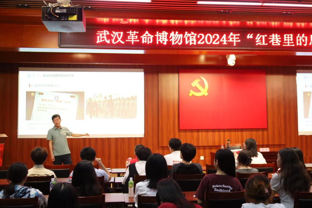 尹平老师以武汉会战为线索,详细阐述了1938年日军占领南京后企图控制武汉并迫使国民政府屈服的历史背景,深入分析了国共两党在“战时首都”武汉为民族大义而捐弃前嫌,在政治、军事、经济、外交等领域密切合作,共同抵御民族大敌的历史全过程。他着重强调,武汉会战不仅有效削弱了敌人大量有生力量,极大地鼓舞了中国人民的抗战信心,并且为沿海工业的西进提供掩护,打破了日本迅速占领中国以实现殖民统治的妄想。通过全面解读武汉会战的历史意义,尹平老师激励在场观众铭记武汉会战40万先烈的英勇付出,珍视来之不易的和平,赓续红色基因,传承红色血脉,共同创造中华民族伟大复兴的美好未来。