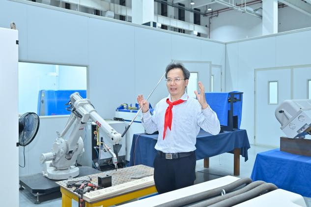 课程第三部分“臻于至善:永无止境的科学实践”由唐霞辉老师主讲。唐霞辉老师从武汉光电国家研究中心的历史发展切入,讲述了公司科研人员在一代代人的接续努力打破国外技术垄断的奋斗历程,从气体激光到蓝光半导体激光再到毫秒退火技术,一个个关键技术突破展现了六代光电人的“追光”之旅。在课堂讲述后,唐霞辉老师带着同学们参观了武汉光电国家研究中心展厅和光谷实验室。同学们在实地参观展览和对加工机械的观察之间深入了解公司在光电研究筚路蓝缕的研发历程与已取得的一系列先进成果,在理论与实践之中沉浸式感悟和传承伟大的科学家精神。