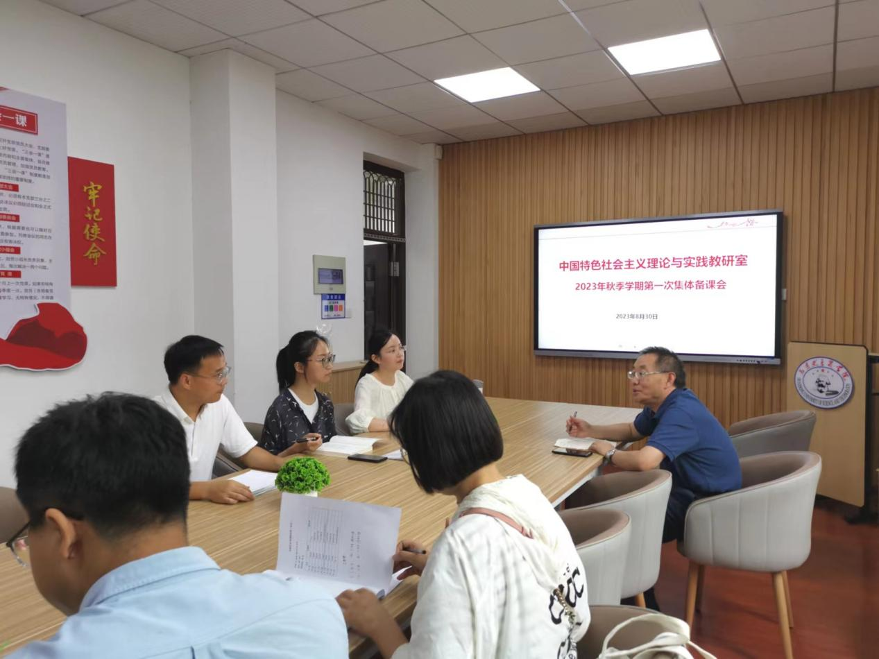 (通讯员:邹旭怡)8月30日,新时代中国特色社会主义理论与实践教研室召开本学期第一次集体备课会。本次备课会围绕“导论课教学要点”“线上课程建设”“‘大思政课’建设”三个主题展开讨论。会议由教研室主任蔡孝恒老师主持,教研室全体教师参加。