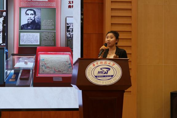 红安—黄麻起义和鄂豫皖苏区纪念馆讲解员邹芬围绕《共产党宣言里的信仰力量》主题,讲述了荆楚英烈张行静用生命诠释《共产党宣言》的革命事迹,充分展示了马克思主义真理的力量和不怕牺牲的革命精神。