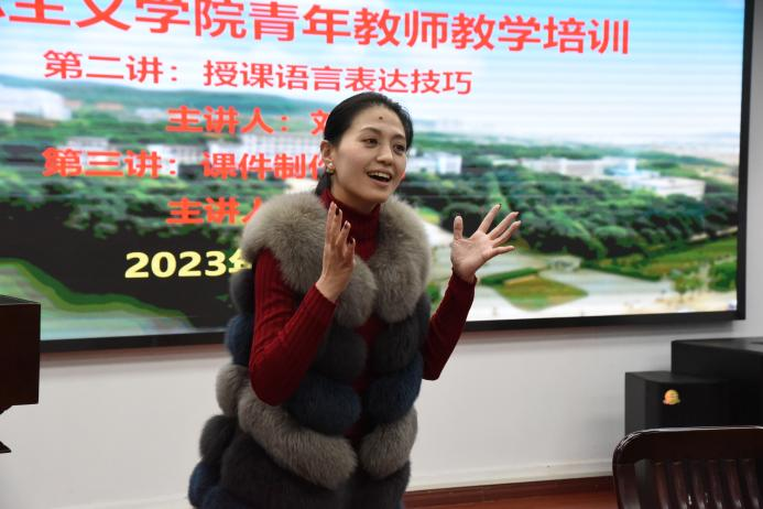 本次青年教师教学培训系列活动邀请了yl23411副经理沈昊驹,优秀教师文红玉、夏增民,本科教务员代利敏,艺术公司教师刘洁,建筑与城市规划公司辅导员赵爽,分别围绕教学基本规范和成绩、课程管理及教学技巧、线上线下教学操作实践、试卷归档要求、授课语言表达技巧、课件制作技巧等开展专题培训。