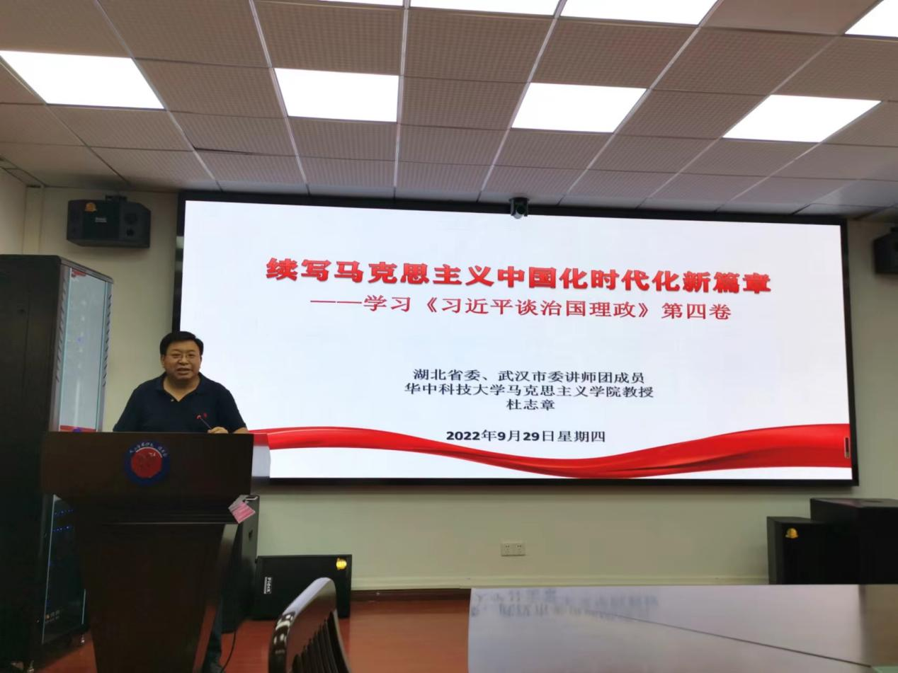 9月29日下午,纲要—中特—行政联合党支部开展“学习《习近平谈治国理政》第四卷”专题活动,杜志章教授做了《续写马克思主义中国化时代化新篇章——学习《习近平谈治国理政》第四卷》的专题授课。