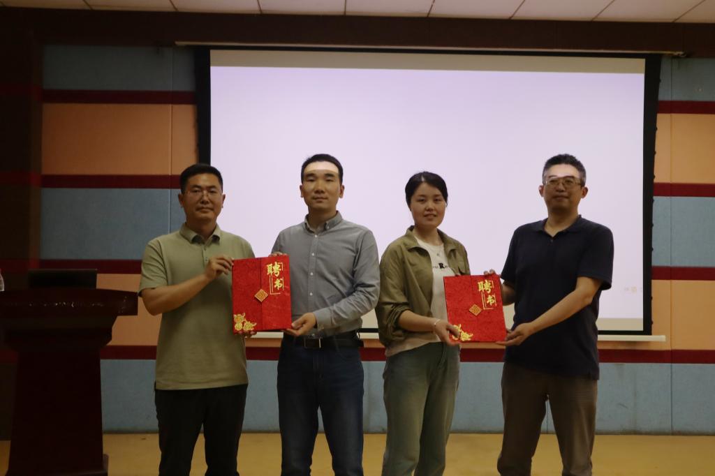 答疑结束,闫俊懂和聂红波为两位主讲老师颁发“华中科技老员工涯规划导师”聘书。