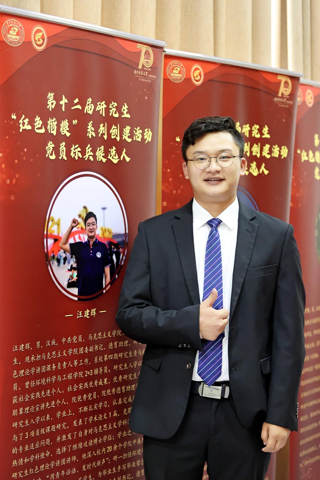 2022级博士生汪建辉,曾获中国老员工自强之星、校优秀共产党员、研究生党员标兵、优秀研究生干部荣誉称号。“做一名马克思主义者,让信仰成为一种力量。”是汪建辉的座右铭,他矢志做马克思主义的实践者和传播者,始终致力于“用青年话语,发时代新声”,个人累计开展基层理论宣讲200余场,带领团队打造高质量课程60余门,让党旗在员工群体中高高飘扬;他热心员工工作和社会公益,在服务集体和社会发展中彰显青春价值,努力用脚步丈量祖国大地,把实践问题熔铸于学术研究中,以实践砥砺奋斗青春。