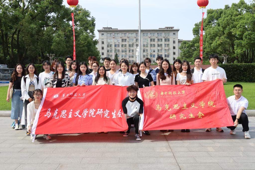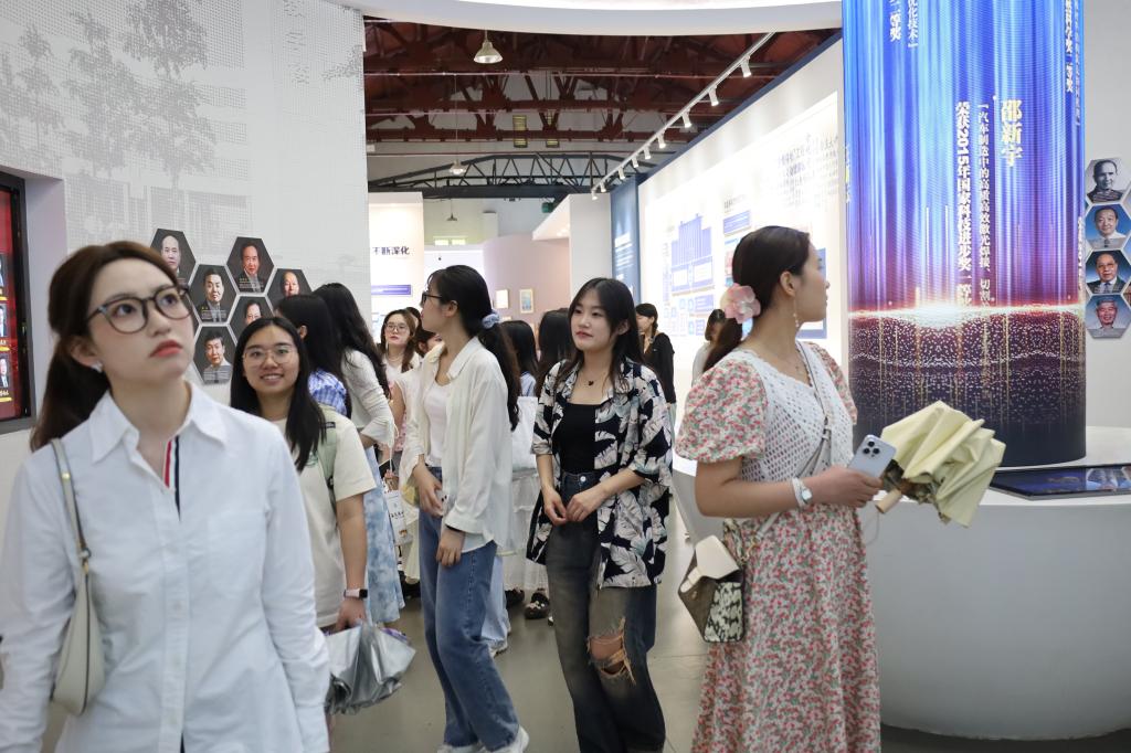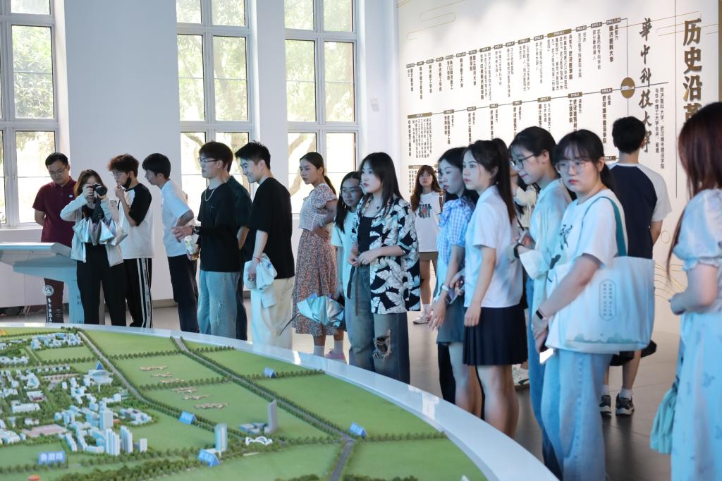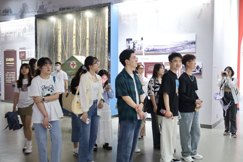 活动伊始,同学们一起来到了华中科技大公司史馆,校史馆主体由砖石和钢铁构成,醒目深邃的红体现的是华科大建校的理念,三校合一,矢志一流,与共和国同行,与新时代奋进。