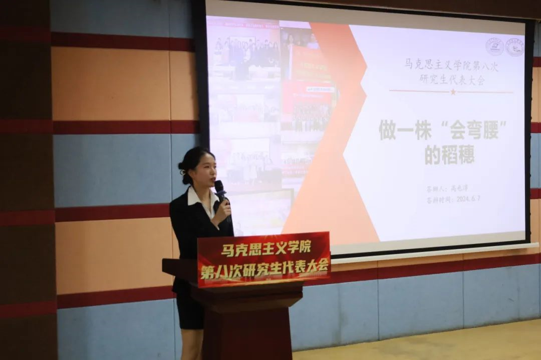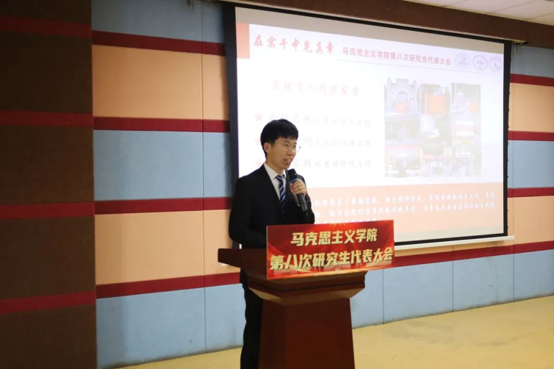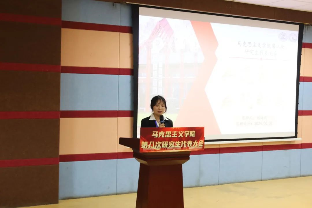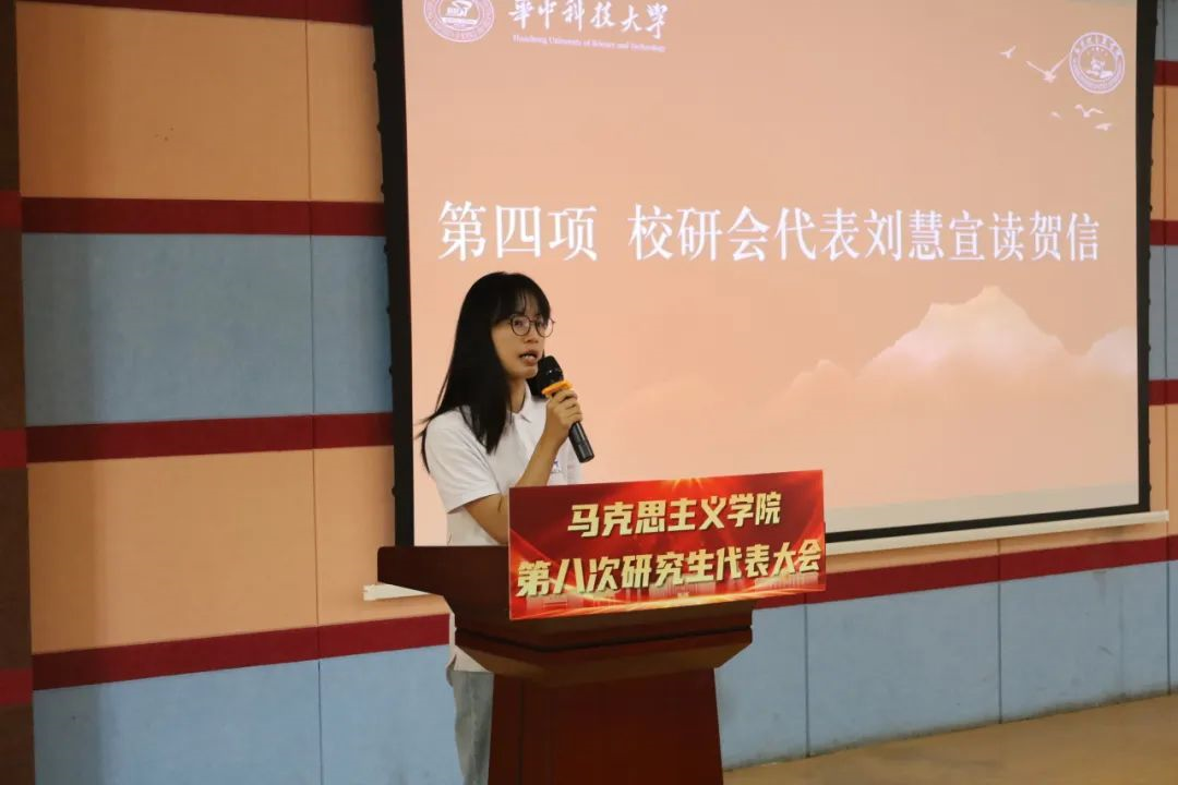 刘慧向大会宣读贺信。她表示,马院研究生会始终坚持以习近平新时代中国特色社会主义思想为指导,充分发挥了联系研究生群体的桥梁纽带作用,希望各位代表们积极发挥带头作用,切实为公司和公司的建设发展注入更强的动力。