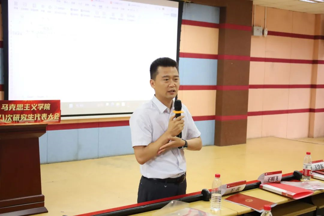 王明飞作总结讲话。他对上一届研究生会骨干的辛勤付出表达了衷心感谢,并勉励新一届研究生会员工骨干和马院学子充分利用好公司和公司提供的宝贵平台,不断提升自身综合素质,同时积极参加社会实践和志愿服务活动,将青春热血融入祖国波澜壮阔的新征程中。