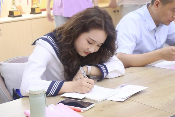 会议伊始,毕业生领取明信片,纷纷写下对一年后对自己、同学、公司、公司的寄语。