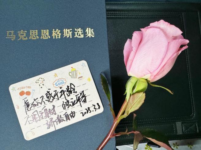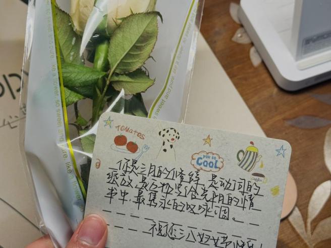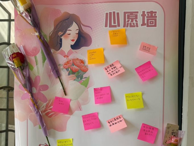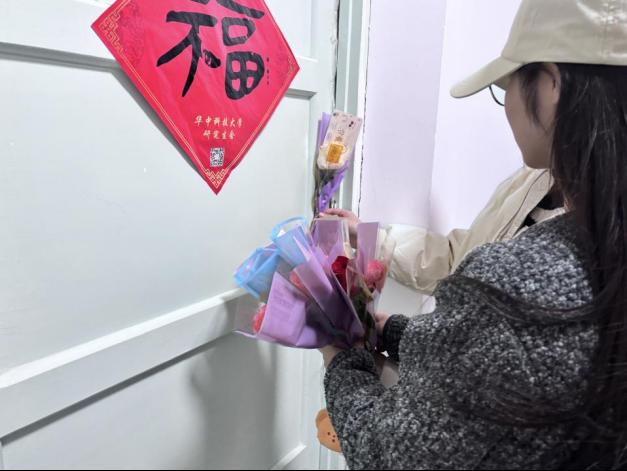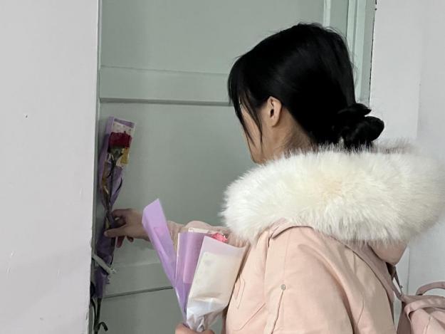 为了让公司每一位女同学都感受到节日的关怀与温暖,活动还特别策划了“宿舍送花”环节。3月7日晚,一场“惊喜行动”悄然展开。志愿者们悄悄在女生宿舍门口粘贴了小型花束和春日主题祝福卡片。花束以康乃馨和香槟玫瑰为主,搭配精心设计的祝福卡片,营造着温馨浪漫的节日氛围。这份“不期而遇”的浪漫让许多同学直呼:“这是最特别的节日礼物!”