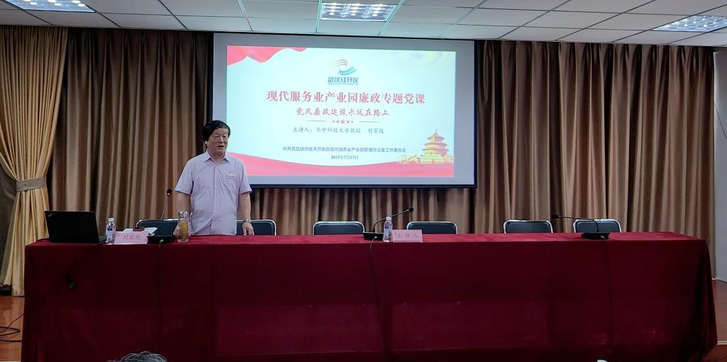 (通讯员:吕洪良)7月27日,yl23411与武汉经开区现代服务业产业园共建的“理论热点面对面实践基地”召开二三季度系列活动,公司刘家俊教授应邀出席报告会并作题为《党风廉政建设永远在路上——再读三篇马克思主义的经典》的讲座。现代服务业产业园及中国城乡、中文在线、湖北水总、中国电建贵阳院城建设计院等企业代表共计50余人参加活动。本次报告会由武汉经开区现代服务业产业园管理办公室副主任焦文超主持。