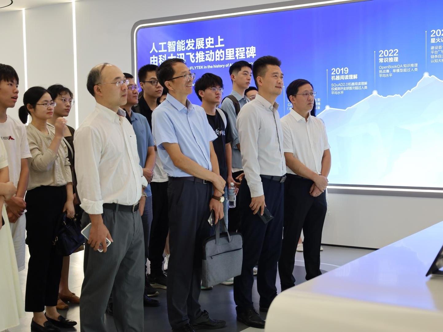 交流活动前期,在科大讯飞华中总部领导及工作人员的陪同下,在场师生共同参观了数字展厅。讲解员为在场师生具体地介绍了科大讯飞的发展历程以及取得的相关成就,演示了人工智能的在不同领域的实际应用,并就科大讯飞在人工智能领域的未来发展规划进行了全面讲解。